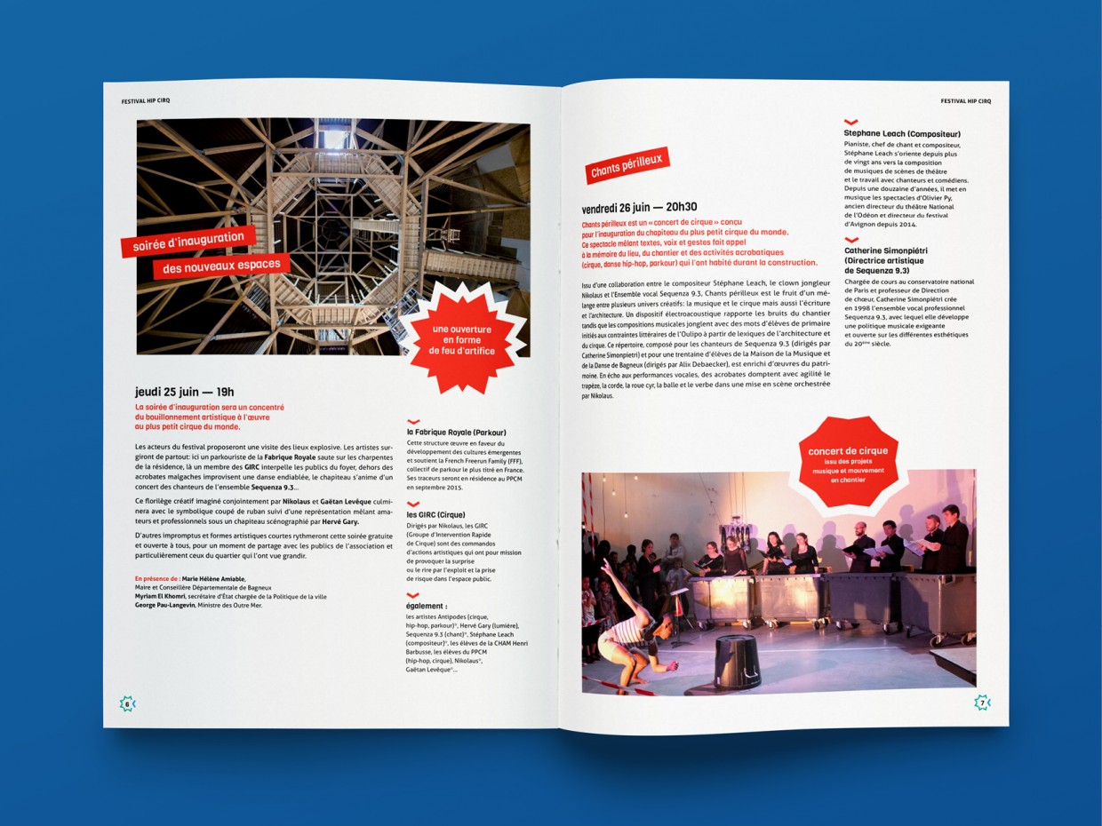 La 7e édition du festival hip cirq est marquée par l’inauguration des nouveaux espaces du plus petit cirque du monde et la mise en œuvre de sa nouvelle identité visuelle auprès du grand public. Le visuel et ses déclinaisons affirment les trames, les formes étoilées au sein d’une composition en mouvement.