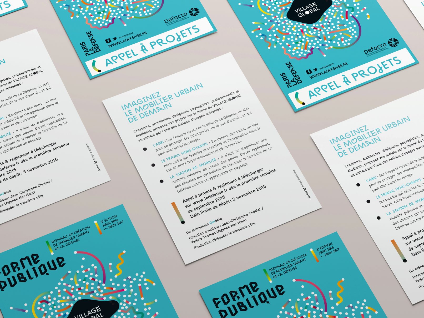 affiches 4×3, 40×60, 118×175 / annonces presse / panneau de chantier / invitations / save the date / carte postale / règlement et cahier des charges de l’appel à projet
