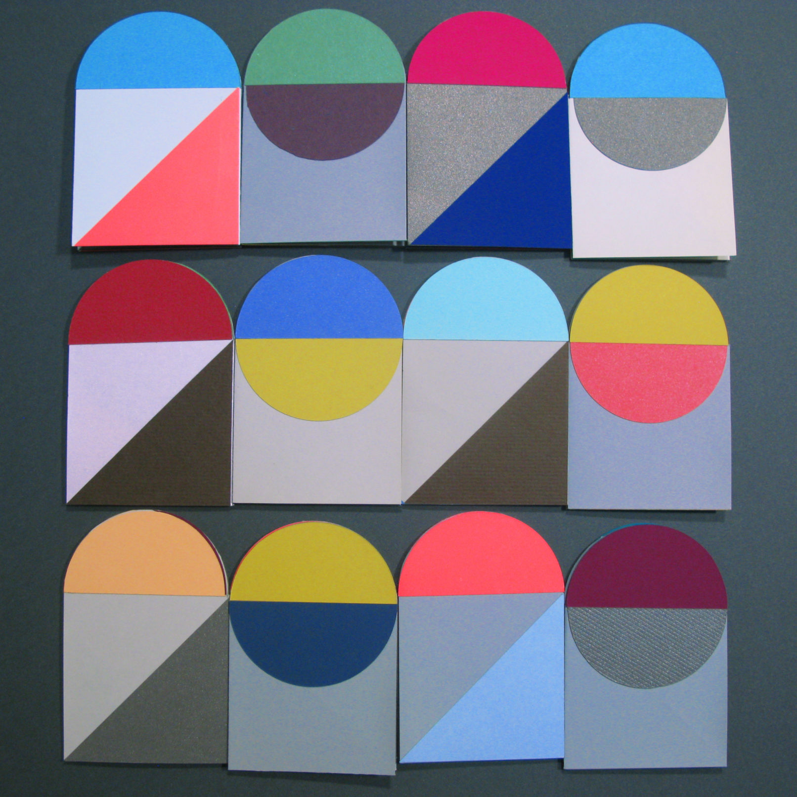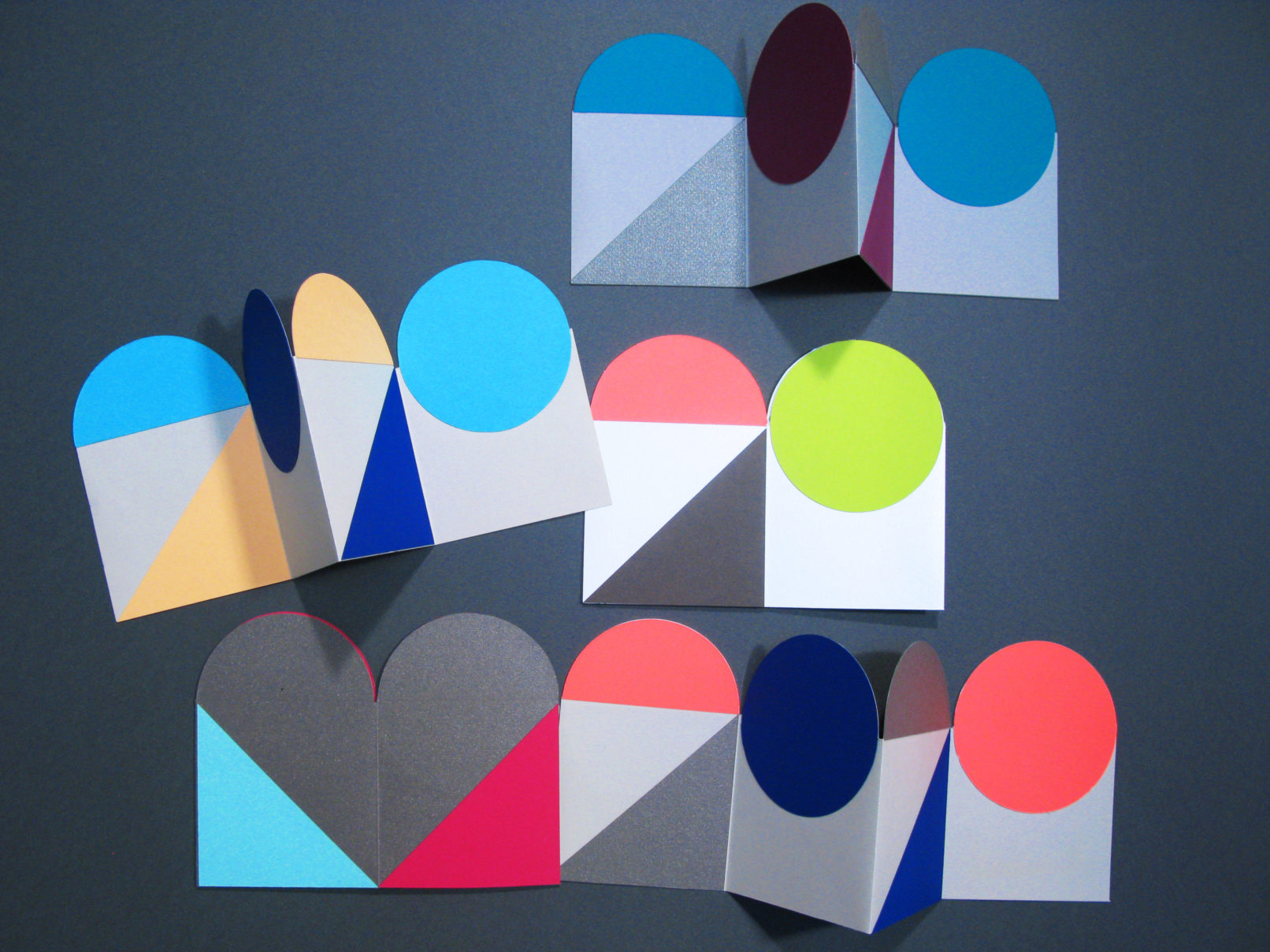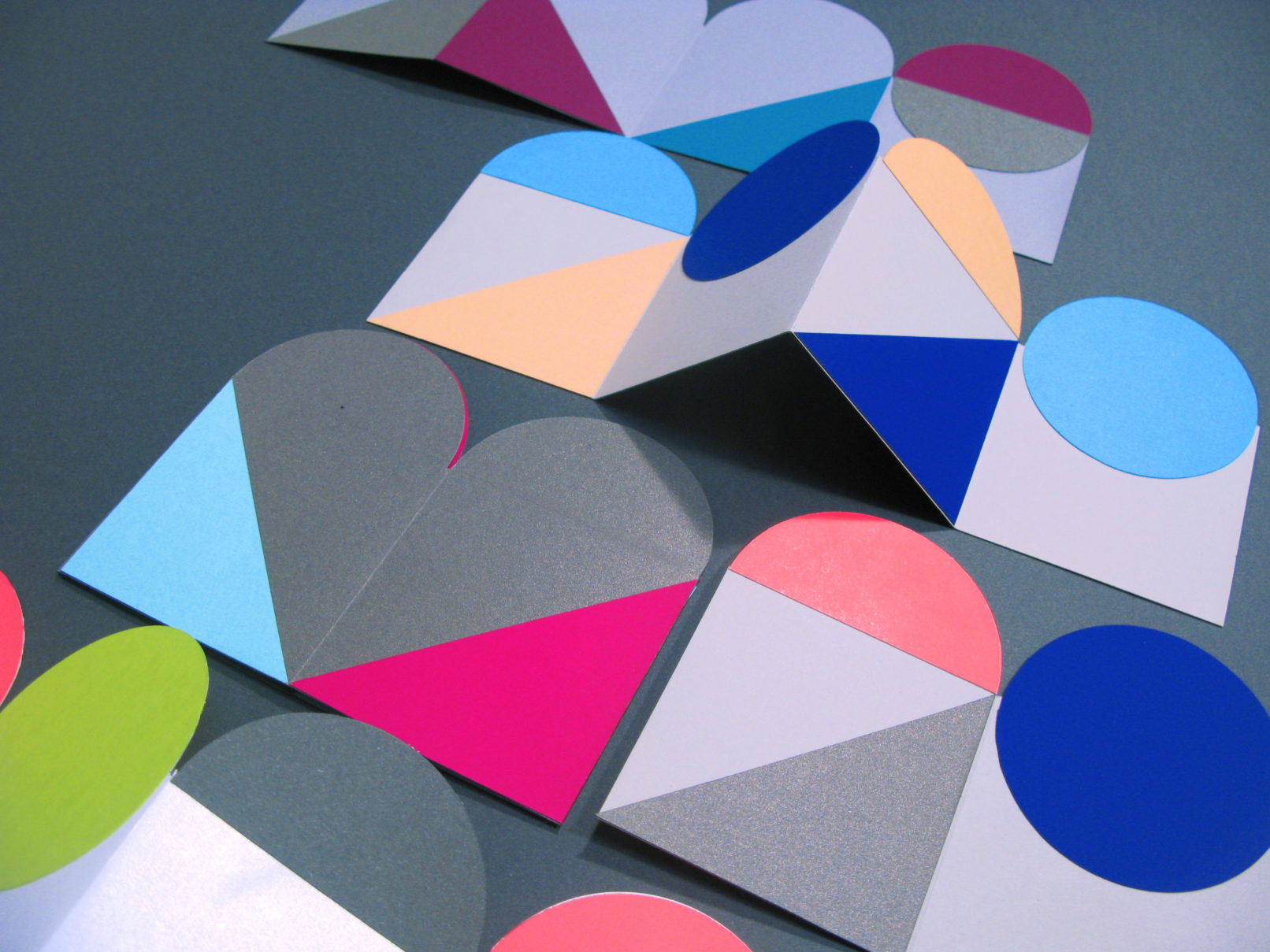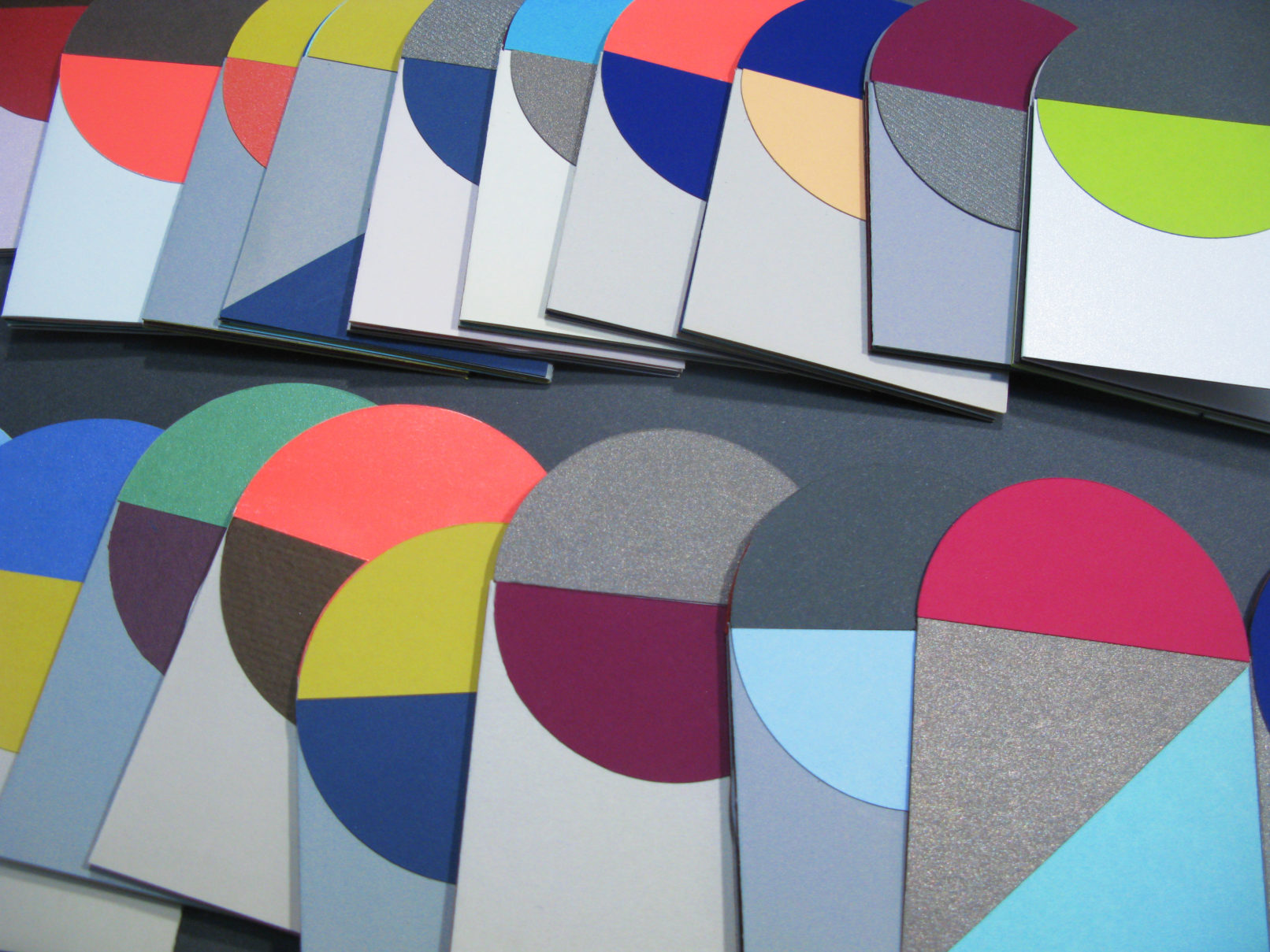 Réalisation d’une petite série de cartes fabriquées maison, qui donne une seconde vie à d’anciens échantillons papiers.