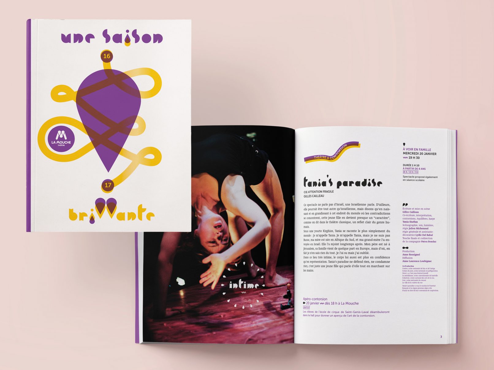 Le théâtre veut affirmer son exigence culturelle au sein du Grand Lyon. Doté d’un logotype immuable mais peu soutenu, l’identité est étoffée d’une typographie de titrage et du signe distinctif de l’exclamation. La trajectoire (ou dynamisme) de la Mouche ainsi qu’un adjectif construisent le concept de saison(s) proposé.