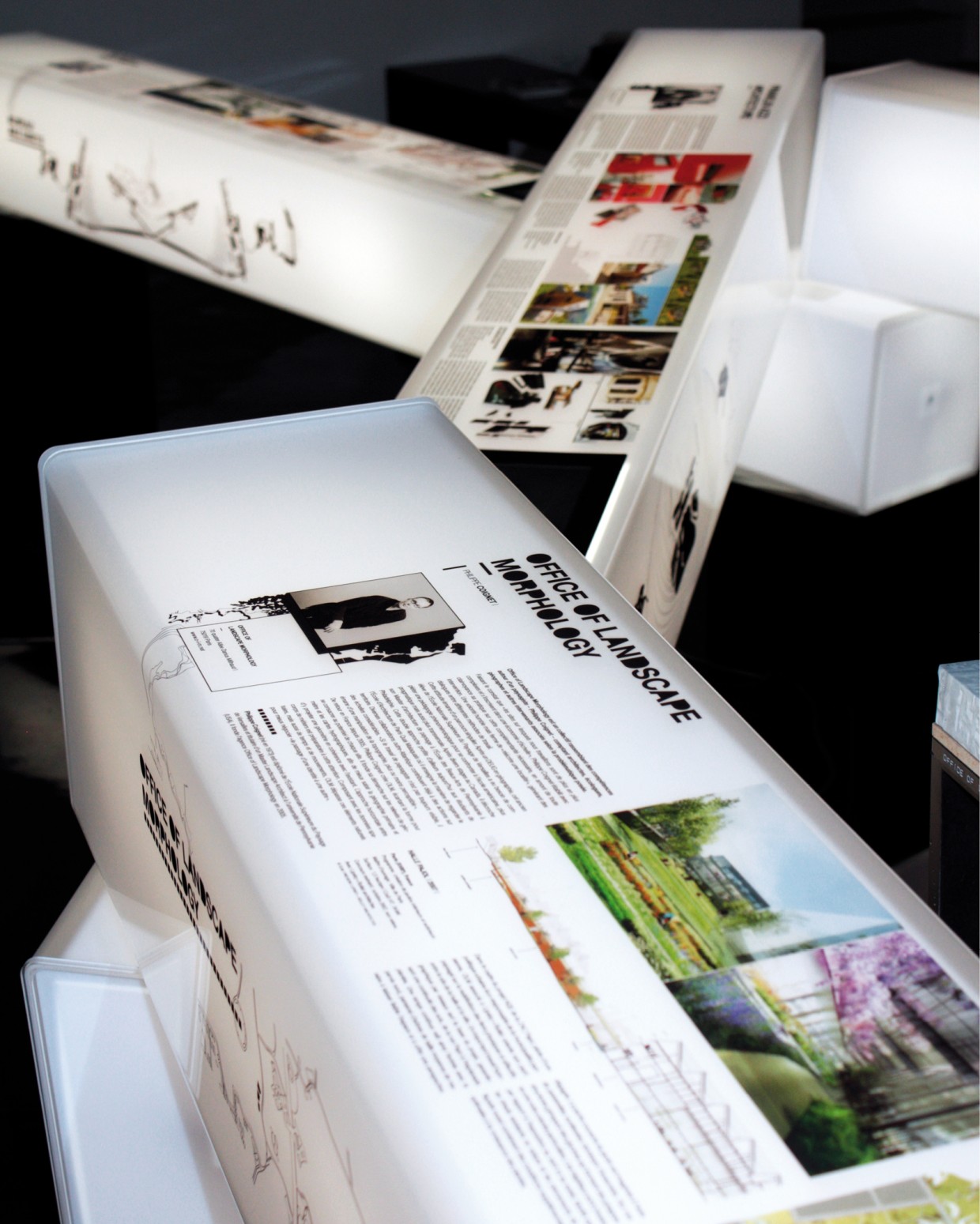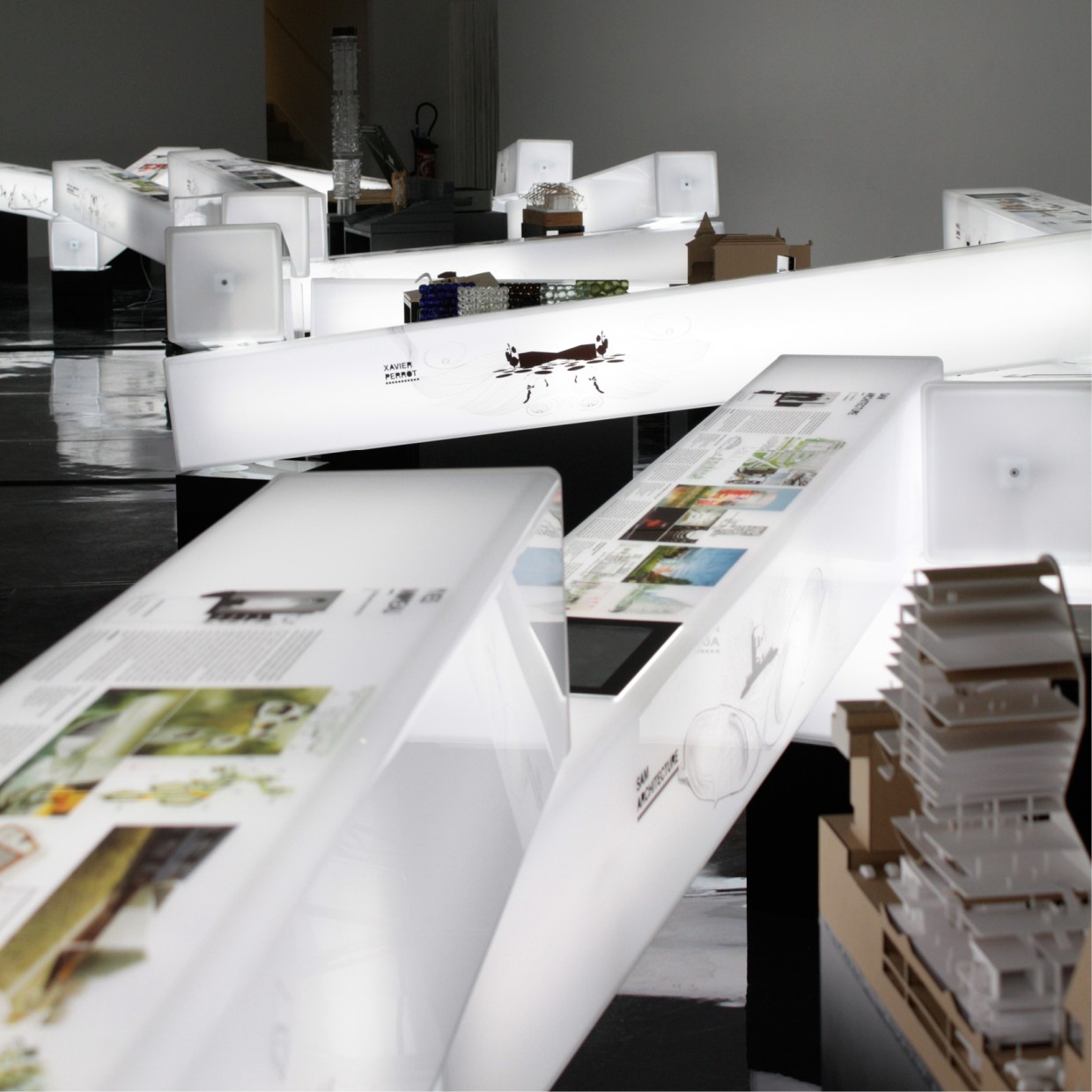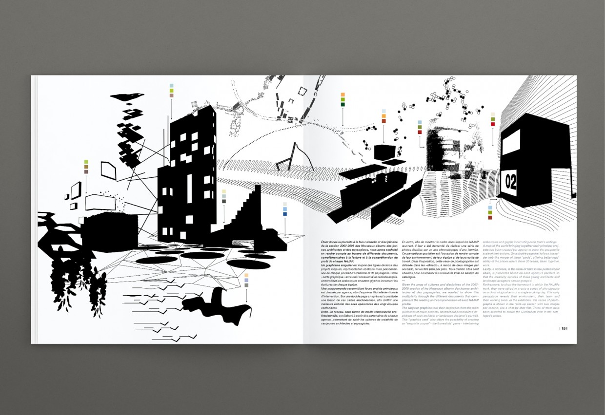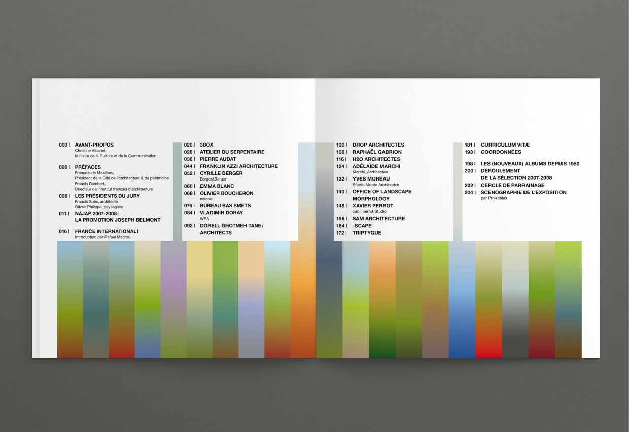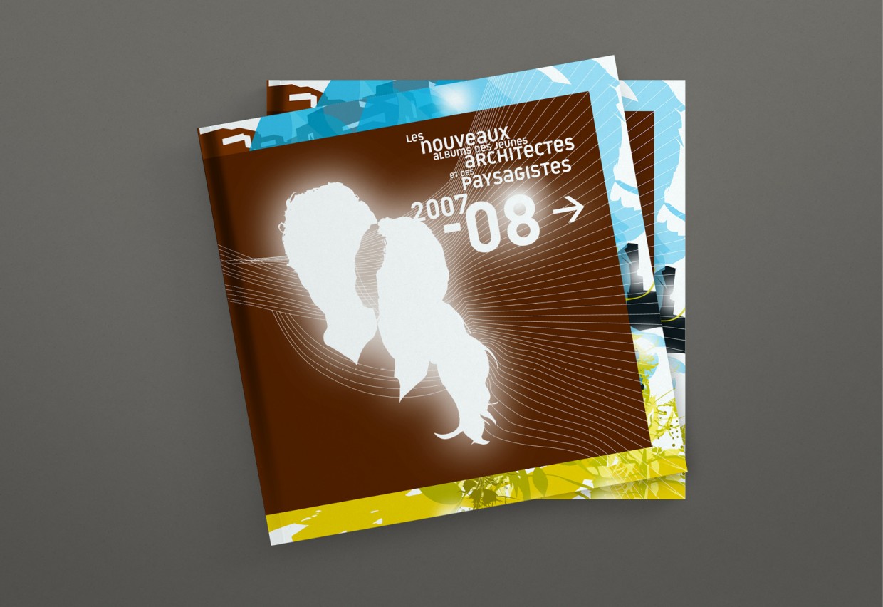 L’exposition des Nouveaux Albums des Jeunes Architectes et Paysagistes 07/08 a pour scénographie un mikado lumineux géant. Par concepteur, une barrette et un univers graphique personnalisé est créé en référence au test de Rorschach et à la carte d’identité. Le catalogue présente l’historique de l’événement, les lauréats et trois de leurs projets.