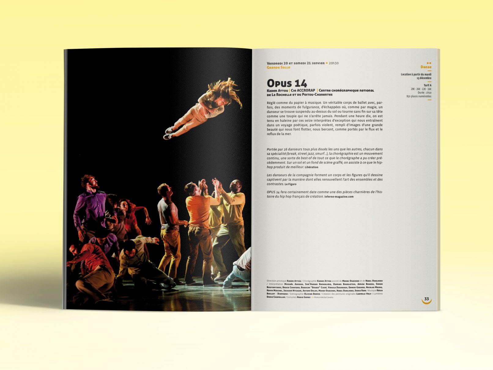 Comme en référence à l’Op Art, le visuel de la saison 2016-2017 guide l’œil sur le centre de la scène nationale : on y vient danser, jubiler, réfléchir et se divertir au rythme des créations contemporaines.
