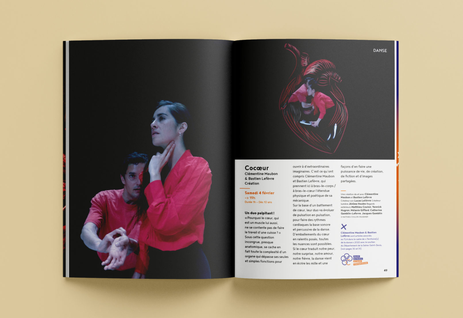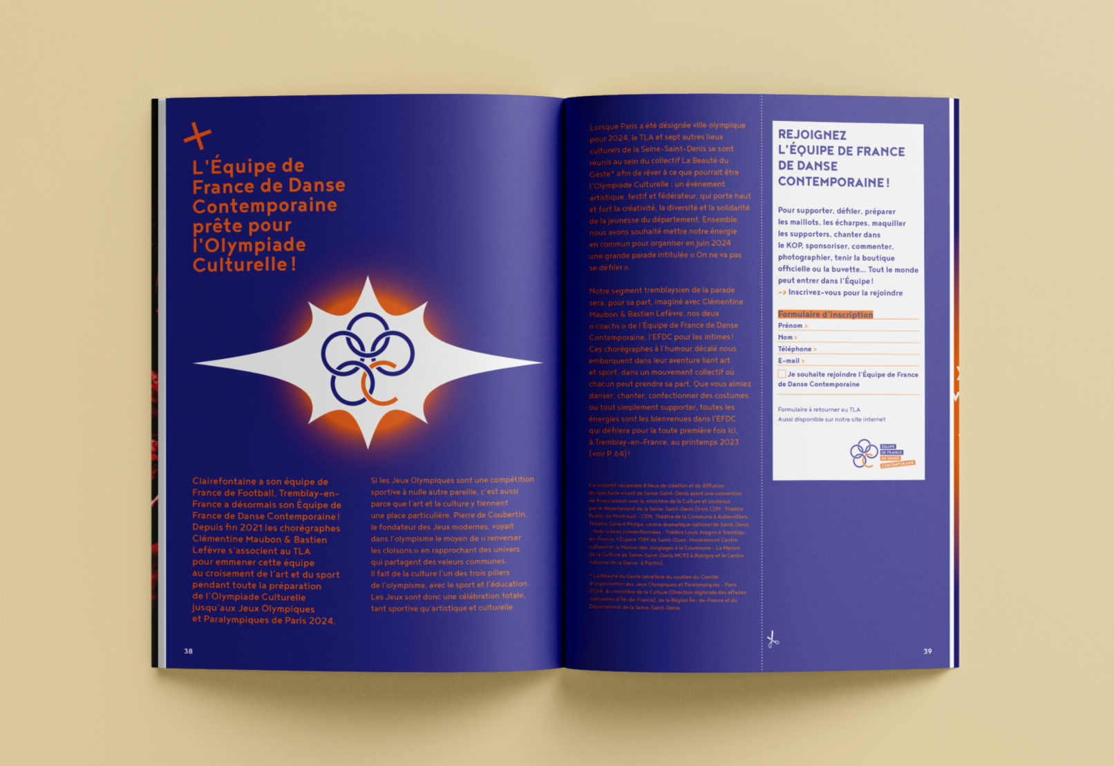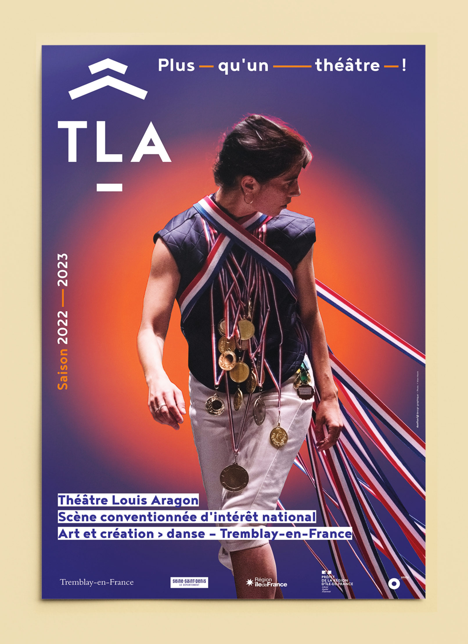 Saison sous le signe de l’Olympiade Culturelle, aventure artistique, humaine et sportive déployée tout au long de l’année avec la compagnie La Grive. L’identité revisite les codes visuels des fédérations sportives françaises.