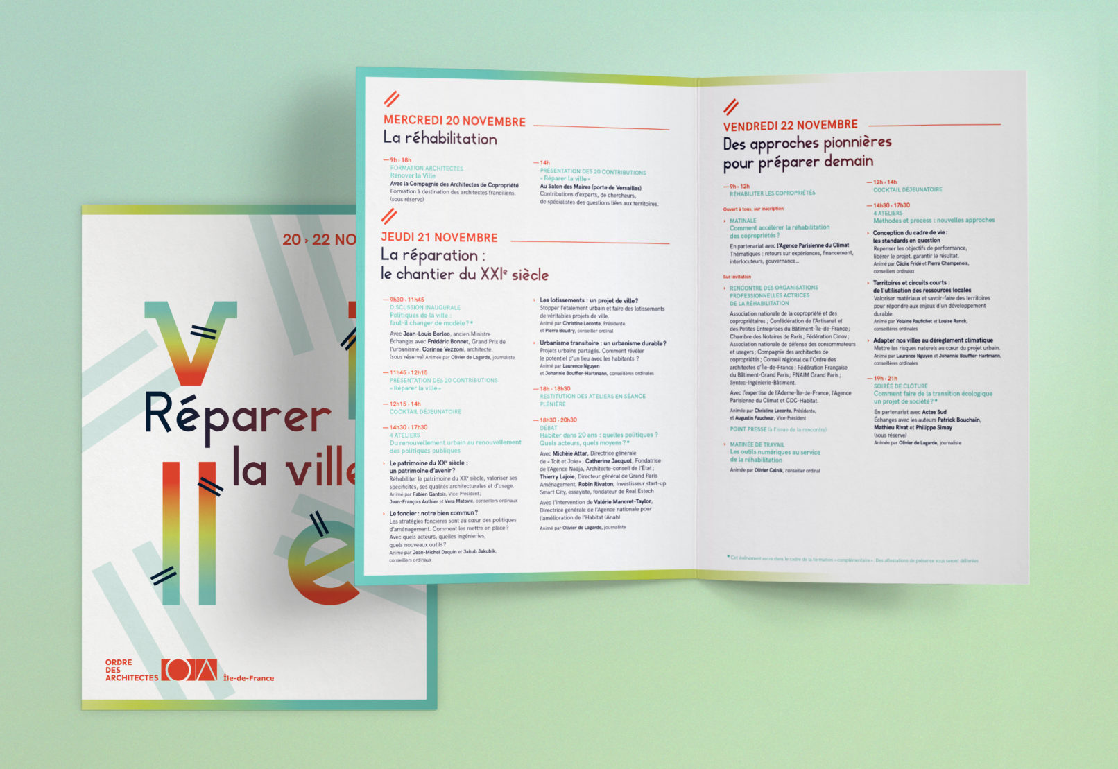 Deux jours de conférences, débats et ateliers pour cet événement consacré à la transition écologique des villes et territoires. La typographie « OA » dessinée pour Ordre des architectes d’Île-de-France se pare des couleurs du changement.
