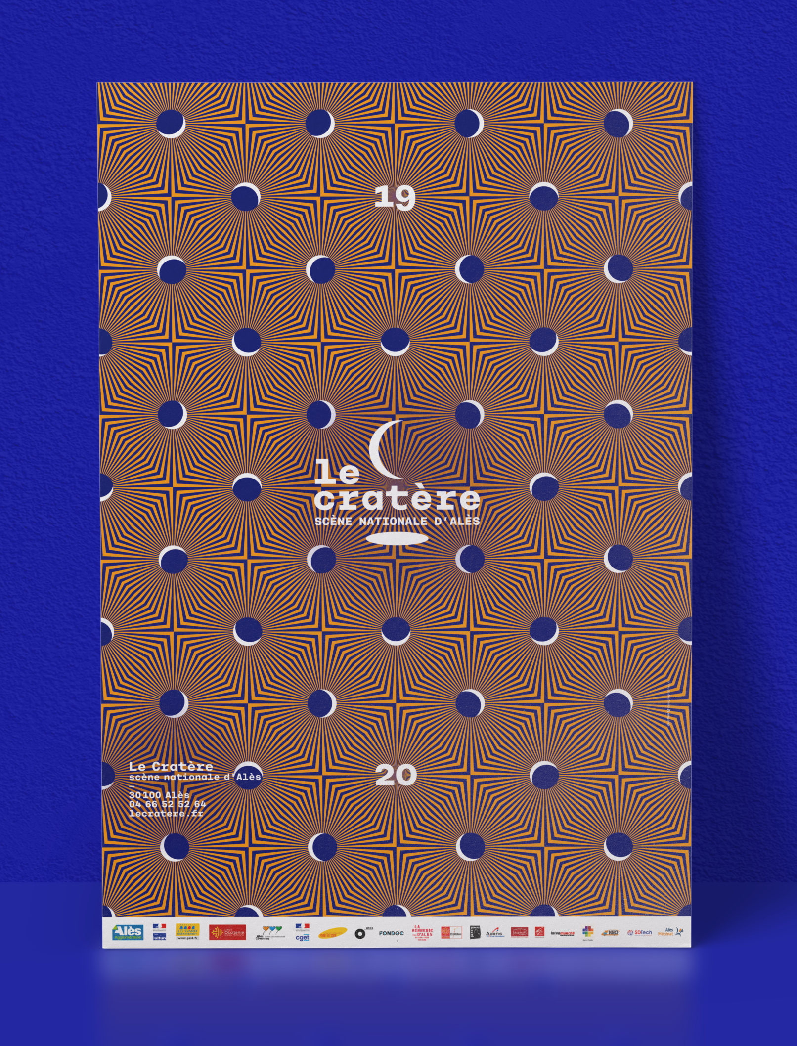Un motif hypnotique, dans la lignée graphique des trois derniers visuels de saisons du Cratère, qui se décline comme un motif sur les différents supports de communication.